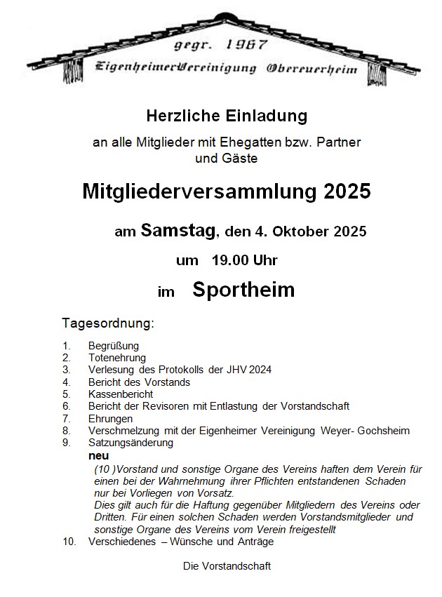 Postanschrift ist Eigenheimer-Vereinigung Obereuerheim und die jeweilige Anschrift des 1. Vorsitzenden.